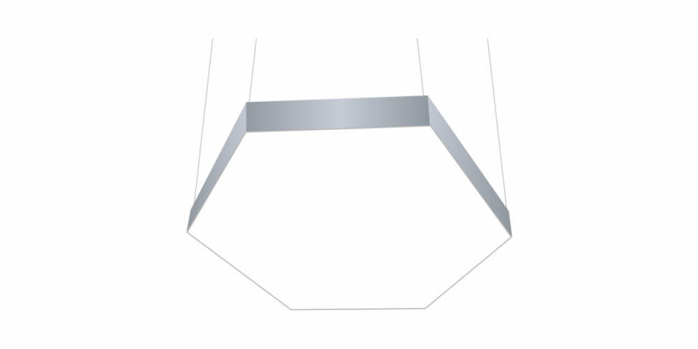 Светодиодный светильник в виде гексагона LiNE-PRO мощностью 350 Вт 2000 мм изготовлен из алюминиевого основания, с установленными на него светодиодными модулями. Возможна различная цветовая температура - 3000К, 4000К, 5000К, 6000К. Боковины могут быть изготовлены из плотного ПВХ различного цвета, на выбор или светотехнического акрила и выполнять функцию рассеивателя. Блок питания внутри корпуса светильника. Монтаж на тросовых подвесах или непосредственно к потолку или стене.