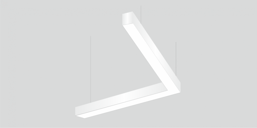 Светодиодный Угловой светильник LiNE-Pro 90гр. 750х750mm 60W 4000K белый предназначен для накладного или подвесного монтажа на тросовые подвесы. Изготовлен из сплошного сварного алюминиевого профиля в виде угла под 90 градусов. Высота установки светильника регулируется подвесом с цанговым тросовым зажимом и может варьироваться от 0,05 метра до 4 метров от основного потолка. Светильник имеет равномерную засветку по всей площади рассеивателя. Источник питания находится внутри корпуса. Торцевые заглушки входят в комплект. Возможно изготовление светильника с магистральной проводкой для соединения нескольких светильников в сплошную конструкцию.