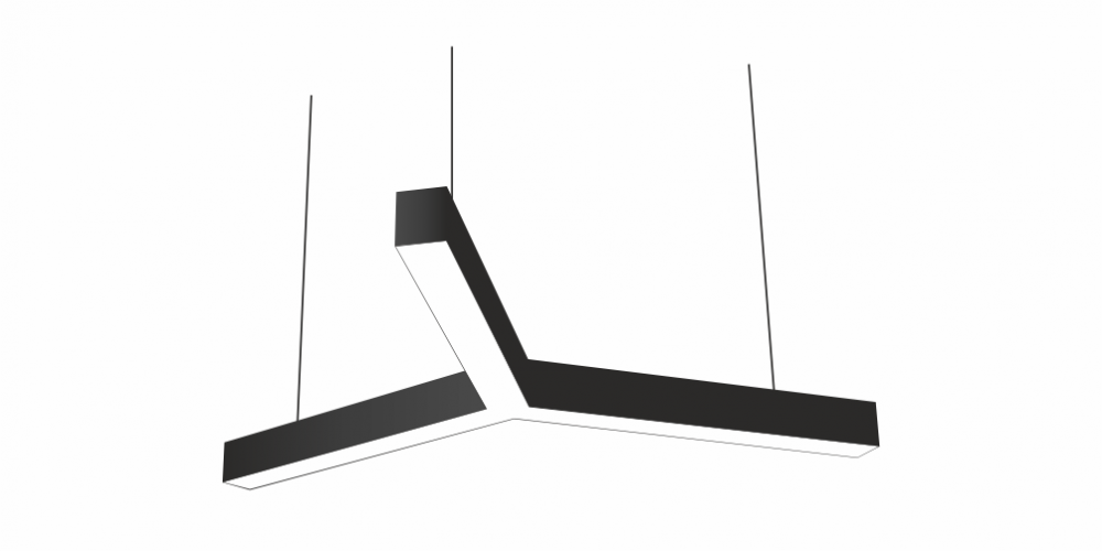 Светодиодный Лучевой светильник LiNE-Pro 3х750mm 40W 3000K черный предназначен для накладного или подвесного монтажа на тросовые подвесы. Изготовлен из сплошного сварного алюминиевого профиля в виде буквы «Y». Высота установки светильника регулируется подвесом с цанговым тросовым зажимом и может варьироваться от 0,05 метра до 4 метров от основного потолка. Светильник имеет равномерную засветку по всей площади рассеивателя. Источник питания находится внутри корпуса. Торцевые заглушки входят в комплект. Возможно изготовление светильника с магистральной проводкой для соединения нескольких светильников в сплошную конструкцию.