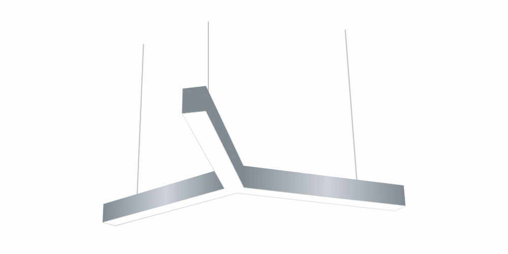 Светодиодный Лучевой светильник LiNE-Pro 3х750mm 40W 6000K серый предназначен для накладного или подвесного монтажа на тросовые подвесы. Изготовлен из сплошного сварного алюминиевого профиля в виде буквы «Y». Высота установки светильника регулируется подвесом с цанговым тросовым зажимом и может варьироваться от 0,05 метра до 4 метров от основного потолка. Светильник имеет равномерную засветку по всей площади рассеивателя. Источник питания находится внутри корпуса. Торцевые заглушки входят в комплект. Возможно изготовление светильника с магистральной проводкой для соединения нескольких светильников в сплошную конструкцию.