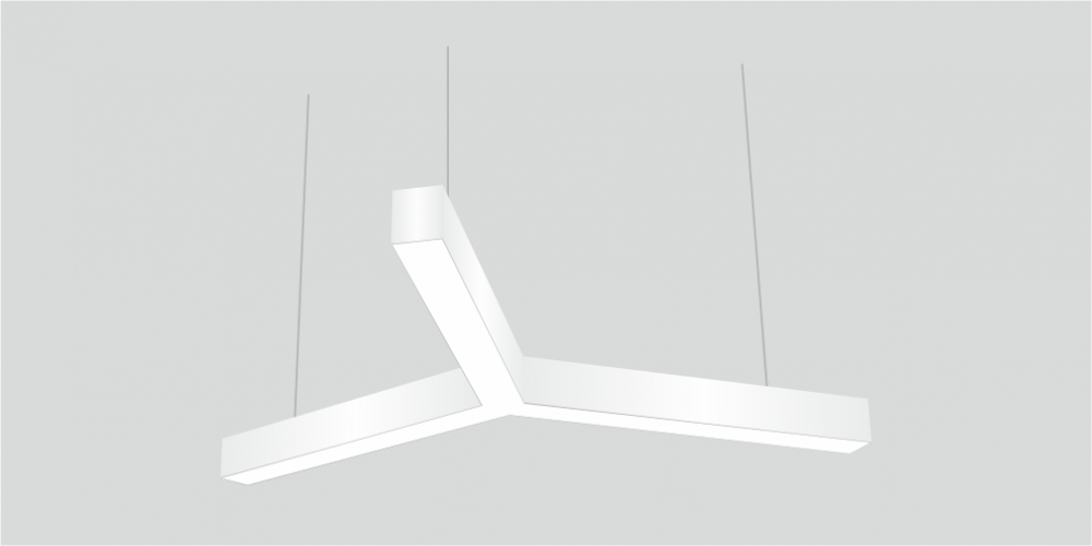 Светодиодный Лучевой светильник LiNE-Pro 3х750mm 80W 4000K белый предназначен для накладного или подвесного монтажа на тросовые подвесы. Изготовлен из сплошного сварного алюминиевого профиля в виде буквы «Y». Высота установки светильника регулируется подвесом с цанговым тросовым зажимом и может варьироваться от 0,05 метра до 4 метров от основного потолка. Светильник имеет равномерную засветку по всей площади рассеивателя. Источник питания находится внутри корпуса. Торцевые заглушки входят в комплект. Возможно изготовление светильника с магистральной проводкой для соединения нескольких светильников в сплошную конструкцию.