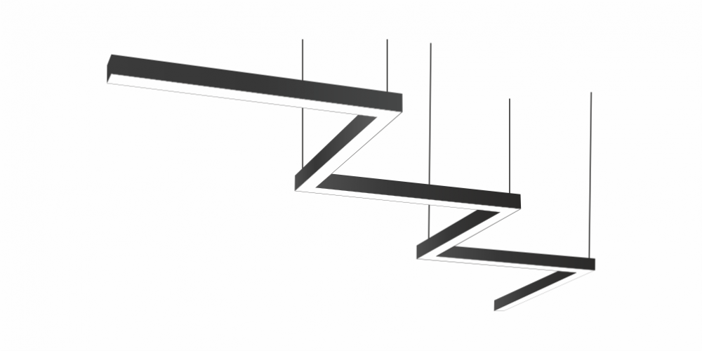 Фигурный светодиодный Светильник Зигзаг LiNE-Pro 6х500mm 60W 5000K черный предназначен для накладного или подвесного монтажа на тросовые подвесы. Изготовлен из сплошного сварного алюминиевого профиля в виде зигзага. Высота установки светильника регулируется подвесом с цанговым тросовым зажимом и может варьироваться от 0,05 метра до 4 метров от основного потолка. Светильник Зигзаг имеет равномерную засветку по всей площади рассеивателя. Источник питания находится внутри корпуса. Торцевые заглушки входят в комплект. Возможно изготовление светильника с магистральной проводкой для соединения нескольких светильников в сплошную конструкцию