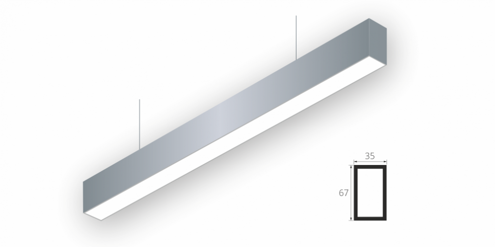 Линейный светодиодный Подвесной светильник LiNE-Pro 67x35 2250mm 68W 6000K Серый предназначен для подвесного монтажа на тросовые подвесы. Изготовлен из алюминиевого профиля длиной 2250 мм, мощностью 68 Вт c цветовой температурой 6000 K, цвет корпуса Серый. Высота установки светильника регулируется подвесом с цанговым тросовым зажимом и может варьироваться от 0,05 метра до 4 метров от основного потолка. Линейный светильник может использоваться для реечных потолков. Светильник имеет равномерную засветку по всей площади рассеивателя. Источник питания находится внутри корпуса. Торцевые заглушки входят в комплект.