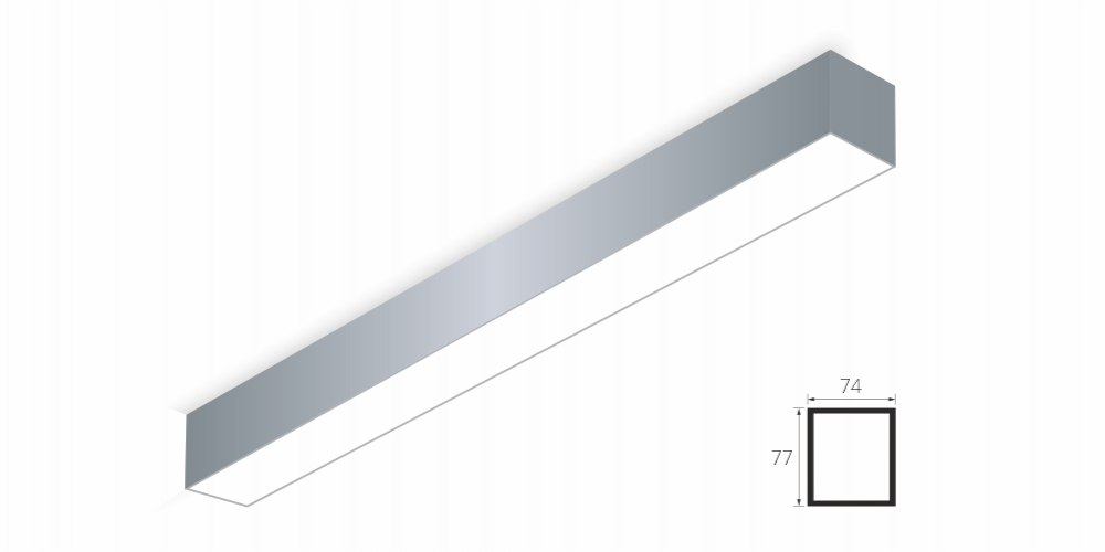Линейный модульный светодиодный Накладной светильник LiNE-Pro 77x74 500mm 8W 6000K Серый предназначен для накладного монтажа на ровную поверхность. Изготовлен из алюминиевого профиля длиной 500 мм, мощностью 8 Вт c цветовой температурой 6000 K, цвет корпуса Серый. Светильники соединяются в сплошную линию с помощью комплекта линейного соединения и сплошной магистральной проводки. Светильник имеет равномерную засветку по всей площади рассеивателя. Источник питания находится внутри корпуса.