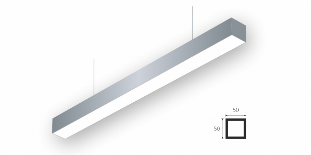 Линейный модульный светодиодный Подвесной светильник LiNE-Pro 50x50 2750mm 42W 4000K Серый предназначен для подвесного монтажа на тросовые подвесы. Изготовлен из алюминиевого профиля длиной 2750 мм, мощностью 42 Вт c цветовой температурой 4000 K, цвет корпуса Серый. Светильники соединяются в сплошную линию с помощью комплекта линейного соединения и сплошной магистральной проводки. Светильник имеет равномерную засветку по всей площади рассеивателя. Источник питания находится внутри корпуса.