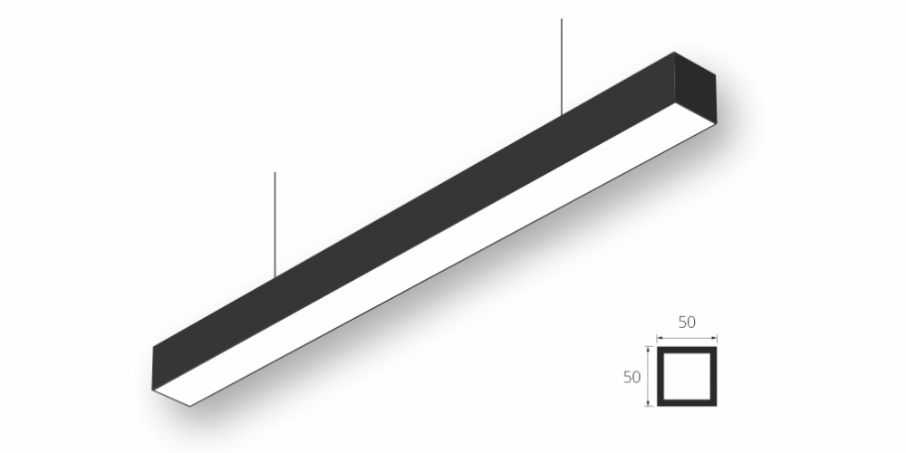 Линейный модульный светодиодный Подвесной светильник LiNE-Pro 50x50 3000mm 135W 3000K Черный предназначен для подвесного монтажа на тросовые подвесы. Изготовлен из алюминиевого профиля длиной 3000 мм, мощностью 135 Вт c цветовой температурой 3000 K, цвет корпуса Черный. Светильники соединяются в сплошную линию с помощью комплекта линейного соединения и сплошной магистральной проводки. Светильник имеет равномерную засветку по всей площади рассеивателя. Источник питания находится внутри корпуса.